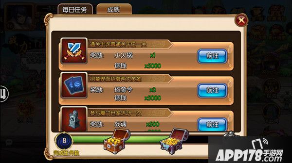 找头领膜拜可以增加 黑瞳点数 可以升级副本银币或战魂取得量 (记得每天膜拜不然不会加点) 创组织 收回扣 如字面上的意思 有小弟充值你就可以收回扣 6.每日任务 回收 > 付出 月卡任务可不用勉强 每日签到 则是必备 7.酒馆的 风月无边 金光玉露 不打算充值可 别花元宝 随机 抽神卡