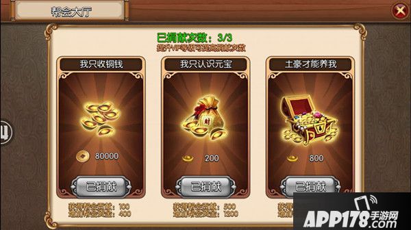 4.帮会捐献可以大方的挥霍下去 1天捐赠200元宝 公会商店每天有两次随机商品更新机会可以选购
