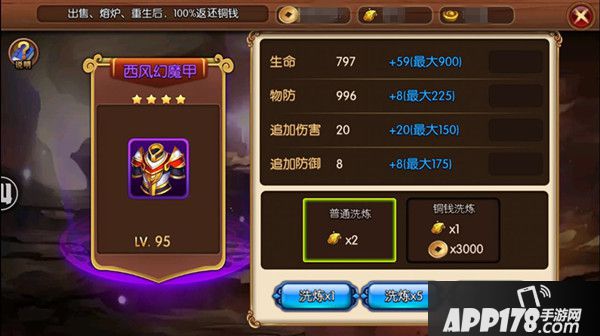 溶解装备 可以额外得到洗炼石 以及原本金币 9.重生系统要小心使用 +5含+5以上的卡牌,升级道具该张卡牌无法回收