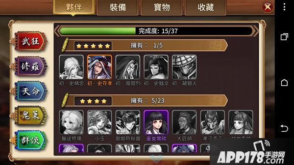 对金光布袋戏粉丝来说,最关心的自然就是游戏有多少出场人物。《金光群侠传》总共收录了武狂、修罗、天命、鬼策以及群侠等阵营共计近百名的金光角色,阵容金光闪闪,绝对让各位戏迷满意。