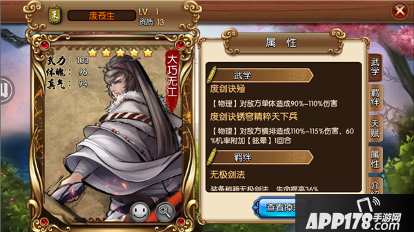 武学特性:60%机率的横排晕眩压制能力极高,只要起争议,苍生都能搞定。