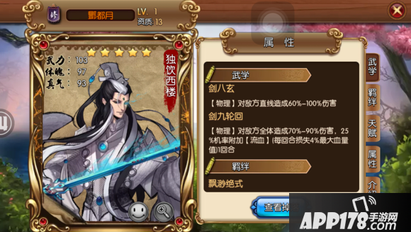 武学特性:怒技全体伤害附加25%流血,25%几率怎么会这么低,这符合还珠副楼主的身份么。
