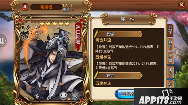 武学特性:气势压制,普攻-1怒大招-4怒,只有君扬怒眉杀天下没有你开大的份。单体高伤害的刺客角。
