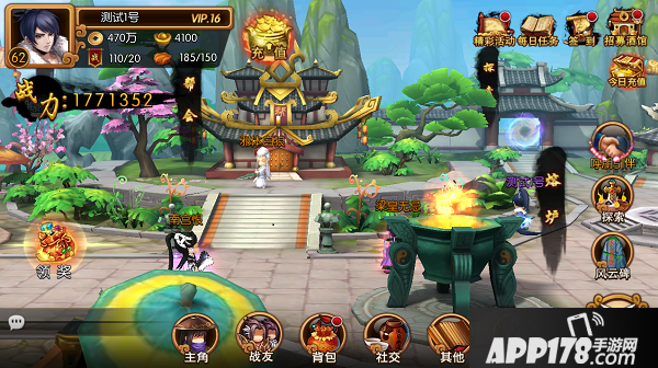 ▲操作选单可分为几大类:强化角色的「主角」、「战友」,「闯关」体验主线剧情,「探索」为各种增加经验、法宝的副本,以及完成各项任务的额外奖赏,当然还有一定会出现的帮大家钱包减肥的商店。