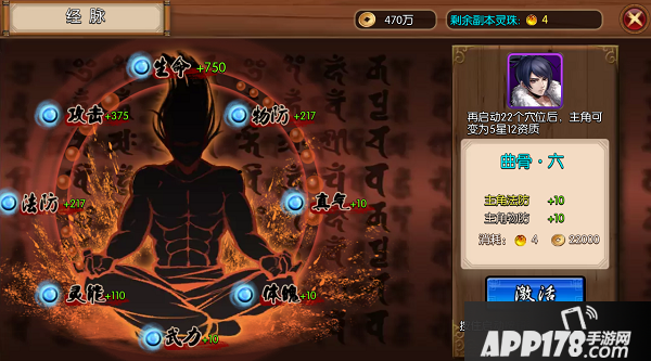▲主角的升级方式和其它队友不同,主要是靠剧情关卡的灵珠打通经脉,进而提升战力和星等。