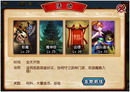 此外,玩家还可通过“内功系统”,为自己带来各种属性提升。在完成任务和日常活动后,玩家可获得“真气”,用于开通不同穴位,获得不同的强化效果,最终成为内外兼修的武学宗师。在等级达到35级之后,玩家可邀约各路英雄好汉,一起参与“组队副本”,抗击魔教入侵,保卫武林门派安全,既有材料、金币、经验奖励,又可结交挚友知己,还能感受战斗乐趣,绝对让你乐此不疲!
