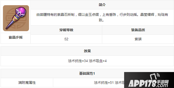 由苗疆特有的紫晶石所制,缀以金玉点缀,上有垂珠,行步则动摇。晶莹耀辉,玲珑有致。