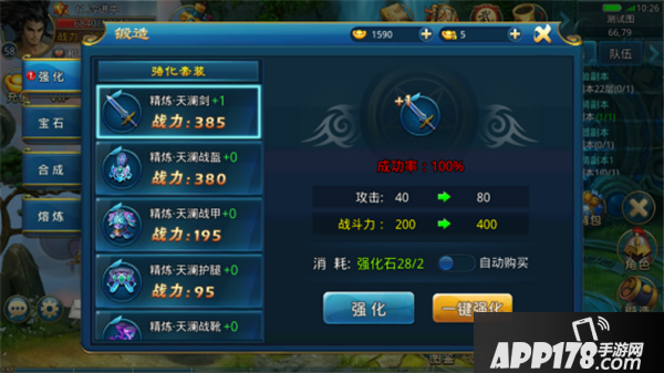 强化可以勾选自动购买,材料不足时自动消耗元宝购买当次强化所需材料。