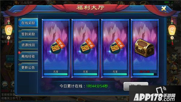 每日累计在线一段时间,便能领取宝箱中的奖励。