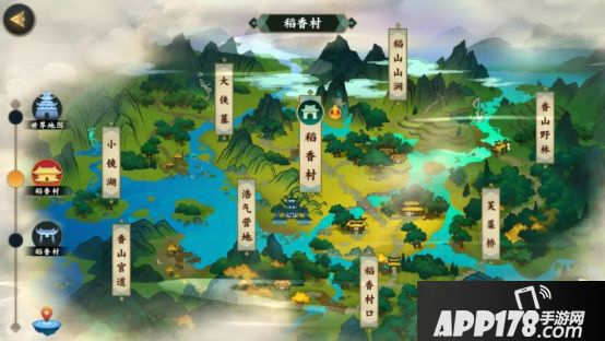 稻香村区域分为稻香村、小镜湖、香山官道、浩气营地、稻香村口、芙蕖桥、香山野林、稻山山涧和大侠墓9个分地图。