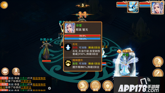 “大寒无雪”为单体控制技能,命中后会附加石化debuff。