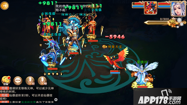 然后就是女娲的大招——母仪天下,女娲第一回合就会使用母仪天下技能,攻击我方所有队员并且回复当前伤害量一定比例的血量。