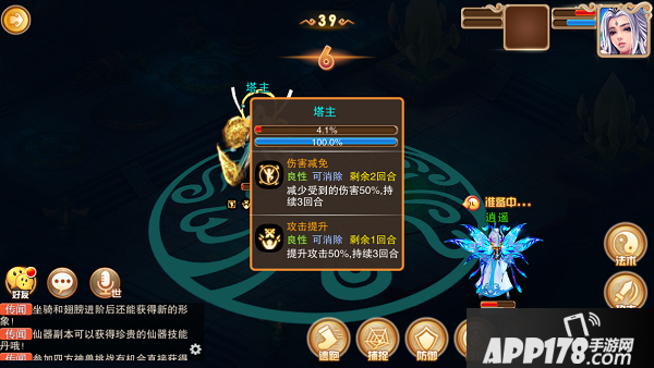 在我们消灭四大金刚是塔主也会继续攻击我们,需要注意一下的是塔主会在第四回合使用穿云裂石单体眩晕技能,我们可以提前控制塔主,防止他使用眩晕技能。