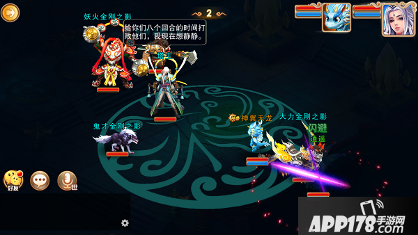 看到只有塔主一人可不要高兴得太早,因为第二回合塔主就会使用召唤技能,召唤出锁妖塔四大金刚,各位有没有回忆起新手时期被四大金刚欺负的日子呢?召唤出四大金刚后,我们需要在8个回合之内消灭四大金刚。