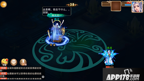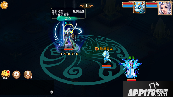进入战斗后能看到只有塔主一人,在第一回合塔主就会使用定心技能,队伍里面的逍遥要注意用清明咒清掉塔主身上的buff。