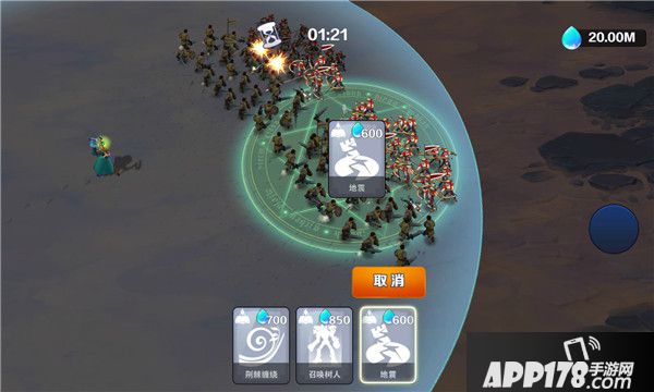 甘在战场上的指定区域引发一场地震,身处其中的敌方单位会受到伤害,对建筑造成巨量的额外伤害。造成伤害受魔力加成。