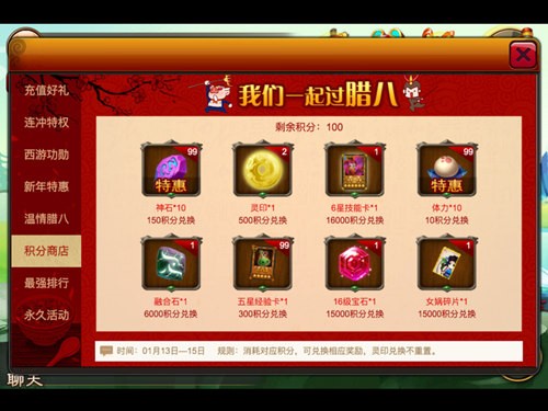 该活动也是此次活动的重头戏,首先任何玩家都可以参与没有任何等级的限制。玩家每天都可以免费获得腊八粥食材*10,如果想要获得更多腊八粥可以通过每日累计充值或是消耗元宝来获得。