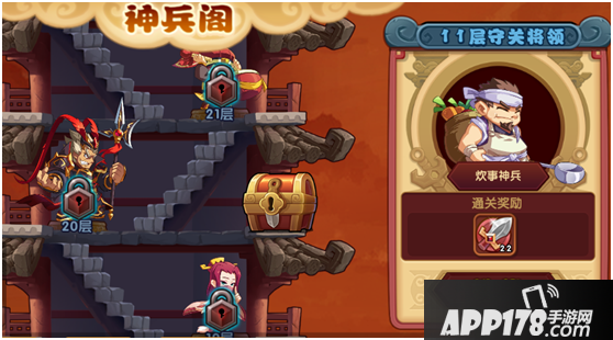 听说,神兵阁层数一直是个谜,萌萌也没有打到最高层,不知道顶层是多少,不过萌萌发现,神兵阁是很考验小队战斗力的地方,每一层的守关领将都是很厉害的武将,假如对他的技能不熟悉的话,萌萌建议看看图鉴,了解他们的技能特征,再进行战前部署。