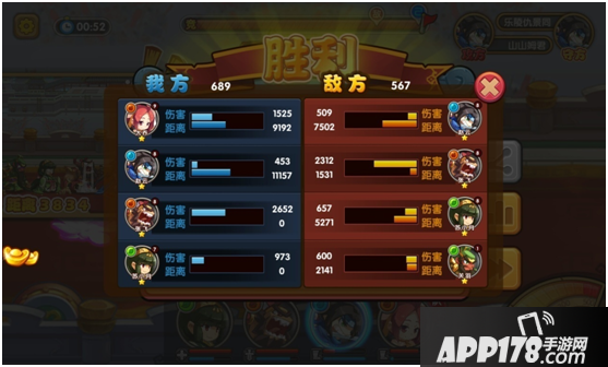 战斗结束后,在结算面板中点击柱形统计图标也可以查看本场的输出情况和带队距离,根据数据再去排兵布阵!