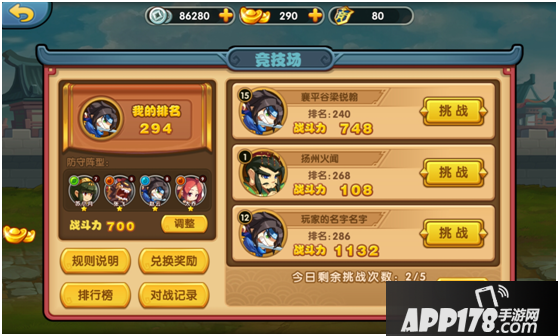 在挑战他人的时候,也是需要做好自己的防守哦!可以在对战界面调整防守阵容。
