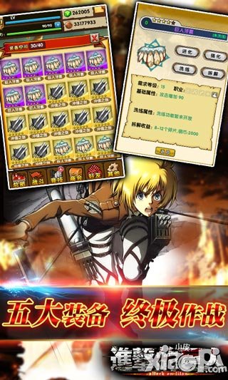进击的巨人五大装备是什么大家知道不,装备对于一个游戏的重要性,玩过些游戏的人都知道啦,那么大家知不知道进击的巨人的五大装备是什么呢,又有什么特征呢,不知道没关系啦,看小编给大家揭秘这五大装备特征。