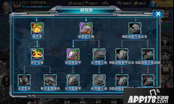 八、研究所。在研究所系统中,我们可以对资源生产技术进行升级,提升资源建筑产量。对战舰的火炮、装甲等部件进行改良,从而提升战舰的各项属性值,从而提升舰队的战力。