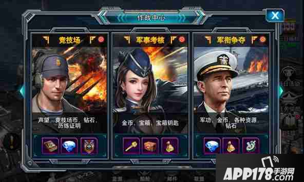 七、作战中心。参加作战中心系统中的竞技场、军事考核、军衔争夺等各种挑战活动可以获得大量的升级所需要资源,积累各种资源,为我们提升战力提供保障。