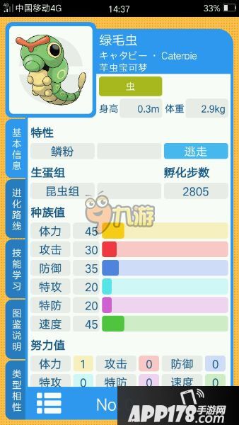 以上就是今天APP178手游小编为大家带来的精灵宝可梦go开局精灵绿毛虫属性详解,相信各位小伙伴们也都清楚的了解了,想要了解更多精彩内容,敬请关注APP178手游精灵宝可梦go官网。
