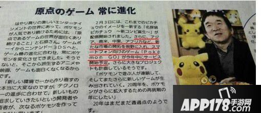 据读卖新闻的口袋妖怪特辑报道,PM社长石原恒和表示,《口袋妖怪:GO》将在今年开启配信,未来会将市场向拓展向亚洲、南美、中东等地。