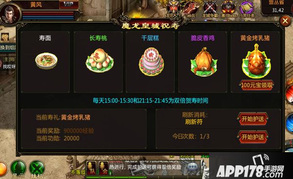 最后温馨提示:运送次数每天三次,元宝不能刷新,如果想获得更多的奖励,可以选择在每天的15:00—15:30和21:15—21:45运送,奖励双倍哦!当然,可能劫匪也双倍的来哦!