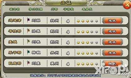 1、一统天下每天会更新3个城市,小编现在的基本基本无损的话是4将三星城,一次给15W粮钱,最少一天要打3次,这样第二天又会刷新,如果不打的话就会出3将三星的,钱也会少,而打4将4星的基本打一次全军覆没,恢复时间和效率很低还不如去攻城略地