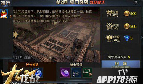 魔兵已经沿江而下,帆影蔽日,前哨已经抵达夏口,接下来的任务,便是迎接挑战:强袭曹操船团前哨,击杀先锋刘岱。这就是第一章第二回夏口强袭,这一关的推荐战力是9w3左右,若是有心的玩家可以很清晰的看出,与第一关想比,这一关的战力要求要远远高于第一关。