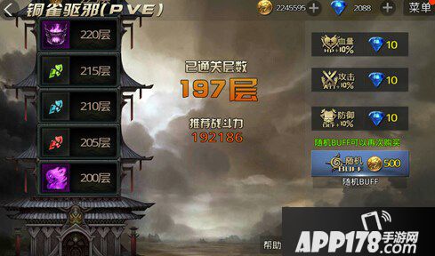 铜雀驱邪中奖励之丰厚,使玩家们垂延不已,但是每闯过一层塔,对玩家的战力要求也是逐渐提升,玩家的战力提升若是没有跟上,那么低战力挑战高战力的塔层是玩家必须经历的阶段。