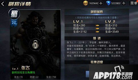2)初始副将属性为280攻击,88防御,3192生命值,每升一级增加攻击30点,防御8点,生命357点。