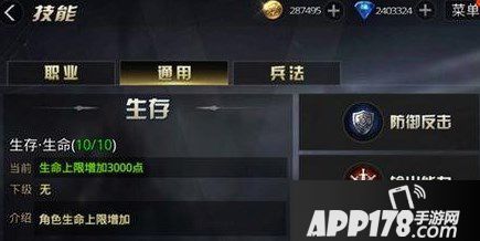 生存能力的分支分别是防御,暴抗,生命,近伤防,远伤防,根据游龙这种冲锋陷阵的职业,以及这个职业的特点,首要的当然是防御分支。