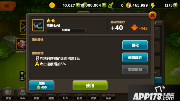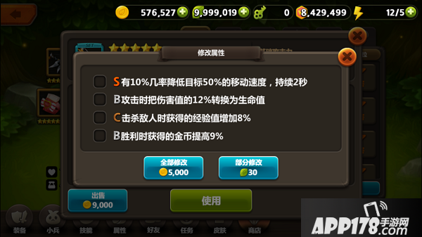 装备通过金币或者叶子进行修改属性。玩家可以花费金币,将全部属性进行随机修改;也可以花费叶子,修改指定一项附加属性。值得一提的是,星级越高的装备,其修改属性所需的消耗的金币或者叶子,也是越多的!所以玩家在进行修改属性前,还是需要存到足够的金币和叶子才行!