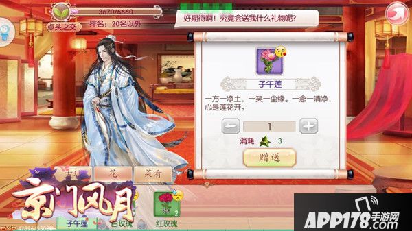 既然想要获得权贵的好感度,就必须要做点什么,让NPC对你刮目相看。接受NPC角色的委托,攻略剧情,可以获得权贵的好感,若是角色一时也无所求,而你又想尽快与之保持熟络,就可以给NPC送礼。在市集中寻找黑市老板购买礼物,根据权贵的性格、喜好赠送礼物,花坊制作的鲜花、厨房亲手烹饪的菜肴都可以赠予NPC。可赠送的礼物上会有萌萌哒表情,喜恶一看既知。