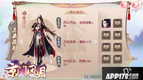 在游戏中,人人都可以训练自己的暗卫,平时若是上心些,每每提升自身技能的时候不忘培养身边的暗卫,使之与自己共同成长,互补所缺,才是上上策。在进阶的时候,分析暗卫们的长处,不断调整自己的暗卫力量,怕是将来走遍南秦也不怕挑事者啦,这其中的乐趣也只有培养者可以体会。