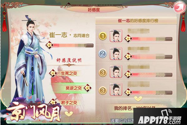 《京门风月》中有许多出彩的配角,他们各自演绎着自己的人生,这一次,他们的去从可以由你主宰。他们不再是剧情中的一个人名,而是个游戏中可以交互的角色。在触发剧情以后,只要按照你的心意去选择,有时NPC很调皮,需要不断跟他/她建立共同的爱好,不断的提升好感度,未来才能走的更远。