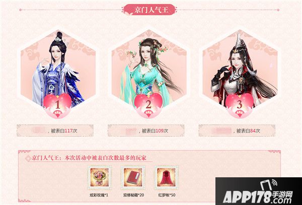 急于脱单的诸位主子在新版本专题网站上也玩得飞起,男神女神在京门中被告白上百次,被推上京门人气王的宝座,轰动京门堪称传奇。不能看着别人桃花朵朵开,快来把自己也打造成人见人爱的风云人物。活动页面上最受欢迎的双修秘籍被万人争抢,不想双修的伴侣不是好夫妻。