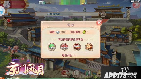 家族捐献是最简单的贡献模式,轻松直接,如果你是个挥金如土的壕,那请承包家族的资金重任吧,还能获得相应不菲的贡献值,何乐不为。若是财力有限,那么除了简单的家族捐献,还有花式贡献获得法。每天登陆京门后问问自己,去找权贵试炼实力了吗?去拉拢权贵了吗?给家族小伙伴送花了吗?去施展朝堂权谋了吗?没有?还不快去!小皮鞭挥起来,这么好的贡献值获得门路,这么轻易放弃可不好啊。除此之外,限时活动皇位之争也可以获得贡献值,总之,家族活动请多多参与,这些都会变成你换取珍稀物品、战斗属性的必备。