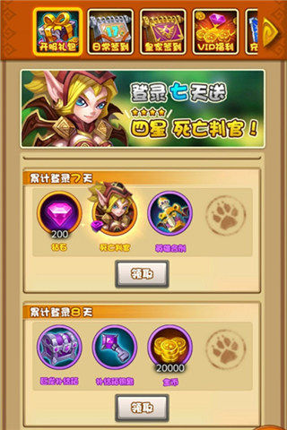 开服第七天登录还会赠送一个4星英雄死亡判官。略有遗憾的是恶魔小丑+智慧女神+死亡判官相互无法激活合战技能,需要靠自己的双手了!这里推荐大家17级之后早地精商店就能刷出霜狼统领灵魂精华,集齐后进行兑换,或在扫荡困难副本获得。这个组合包含4个职业、3种元素属性,适用绝大多数情况。霜狼统领正好是加血英雄,能力也超强的,尤其是超长持续攻击时间的主动技能,对合战值的回复起到很大作用。此外霜狼统领+恶魔小丑可以激活合战技能。确保你的阵容中至少有一个激活合战英雄的组合。