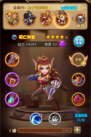 仇恨之刃主要产出在竞技场的兑换商店,如果竞技场排名不高,出的速度会很慢。在这期间可以用恶魔小丑进行过渡。死亡判官是开服登录第7天免费送的4星刺客,这个没什么难度。战争机器(12资质弓箭手),是死亡判官的合战英雄,比较难出,要在40级以上的地精商店刷,准备好灵魂精华吧,相信你到了40级,应该能刷很多英雄灵魂用来提炼精华了吧! 如果一时间出不了合适的英雄,也可以视情况出恶魔小丑的合战英雄霜狼统领,再搭配上一个远程英雄用来辅助过渡。