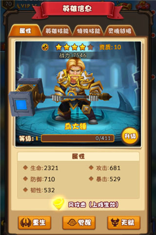从上面我们就可以看到,如果没有一定实力基础,仇恨之刃和战争机器出的速度会很慢,这样前期的优势就大大被削弱。所以这也是乌大锤不够平民的原因。因为付费玩家可以直接从召唤之门抽仇恨之刃,而且也不一定要用【死亡判官+战争机器】这个组合,抽英雄是随机的,英雄选择会更多样化。如果能抽到比乌大锤还厉害的英雄,乌大锤就作为一个过渡的英雄替换掉也是可能的。游戏里有多达数十位4星且品质一样的英雄,实战能力也不尽相同,勇士们大可放肆去体会各自的风骚!