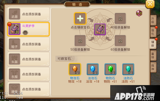 魂导装备升级到30级以后,可以在装备上镶嵌宝石,玩家可以根据自己的魂师职业来决定在装备上镶嵌物攻石、法攻石、气血石、物防石、法防石、速度石、暴击石、抗暴石,一件装备上最多镶嵌四颗不同类型的宝石。