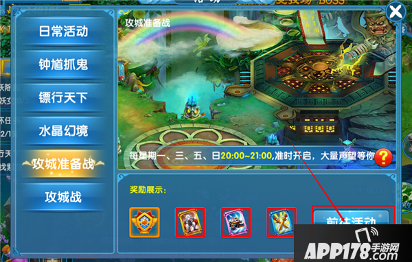 准备战开始后,玩家可以点击主界面的活动按钮,找到准备战进入。进入之后玩家可完成任务获得攻城材料。