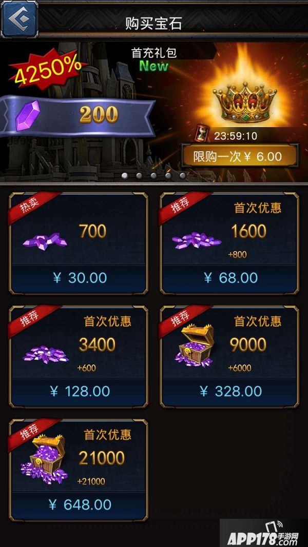 2.这个时候你会看见最上方显示“首冲礼包”。