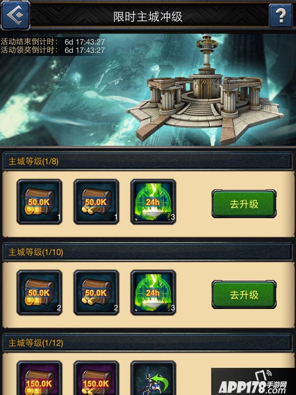以上是主城所达到规定等级的奖励,所以领主大大们为了福利我们努力冲级吧!