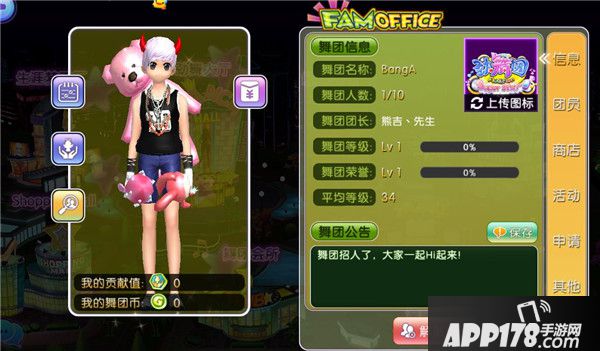 每日签到和对舞团做贡献是提升舞团等级和荣誉的主要途径。舞团商城中不仅有平时使用的合成、染色、进化材料,更是有稀有的个性展示物品喔!