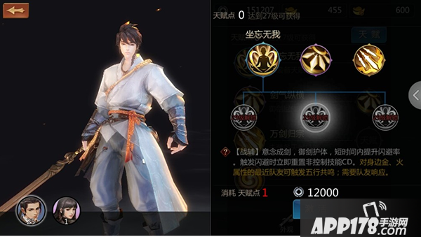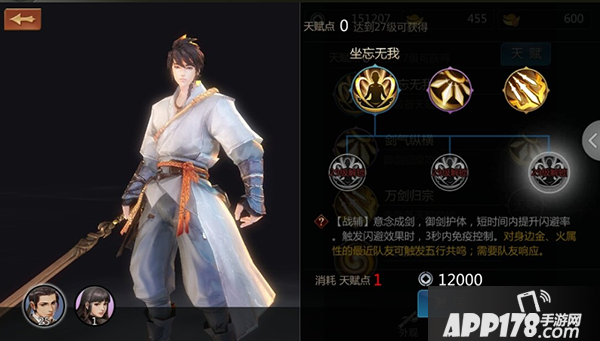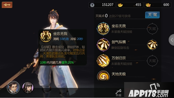 坐忘无我:【战辅】意念成剑,御剑护体,短时间内提升提高闪避率。这是主动保护自己的技能,虽说没有天王护盾,但是武当本来就是闪避高,打不着你能怎么办。